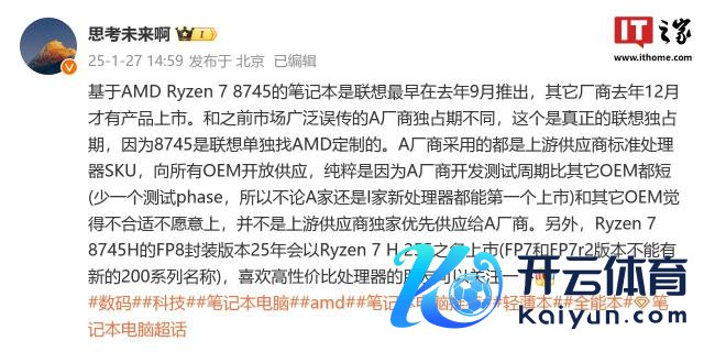 IT 之家 1 月 27 日音书,守望 ThinkBook 家具司理 @念念考将来啊 当天下昼在微博默示,AMD 的锐龙 200 系列照应器将烧毁 FP7 和 FP7r2 封装,全面切换至 FP8 封装。